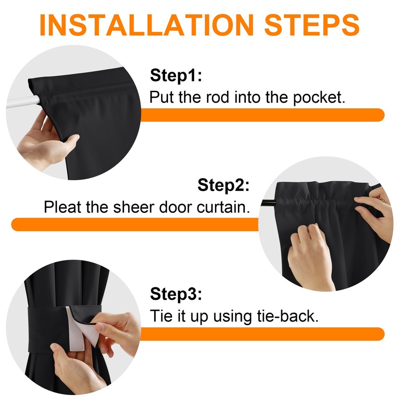 - Easy Installation: These door curtains feature rod pockets top and bottom for easy installation. The dual rod pockets designed on each end gives the curtain a nice fit, and offer you more install options for your needs.