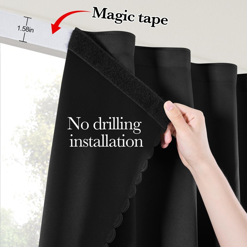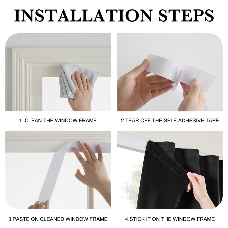 Tired of complicated installations that require drills and leave unsightly holes? Our adhesive blackout curtains offer a hassle-free solution. Simply clean your window frame, peel off the backing, and stick the curtains in place. No tools or curtain rods are needed, making it perfect for renters or anyone who wants a quick and easy upgrade.