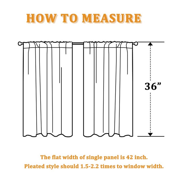 - WELL MADE - Sold as 2 panels. Each Panel measures 42" wide x 36" long with 3" rod pocket top, which fits most of the rods. Both sides are the same color.