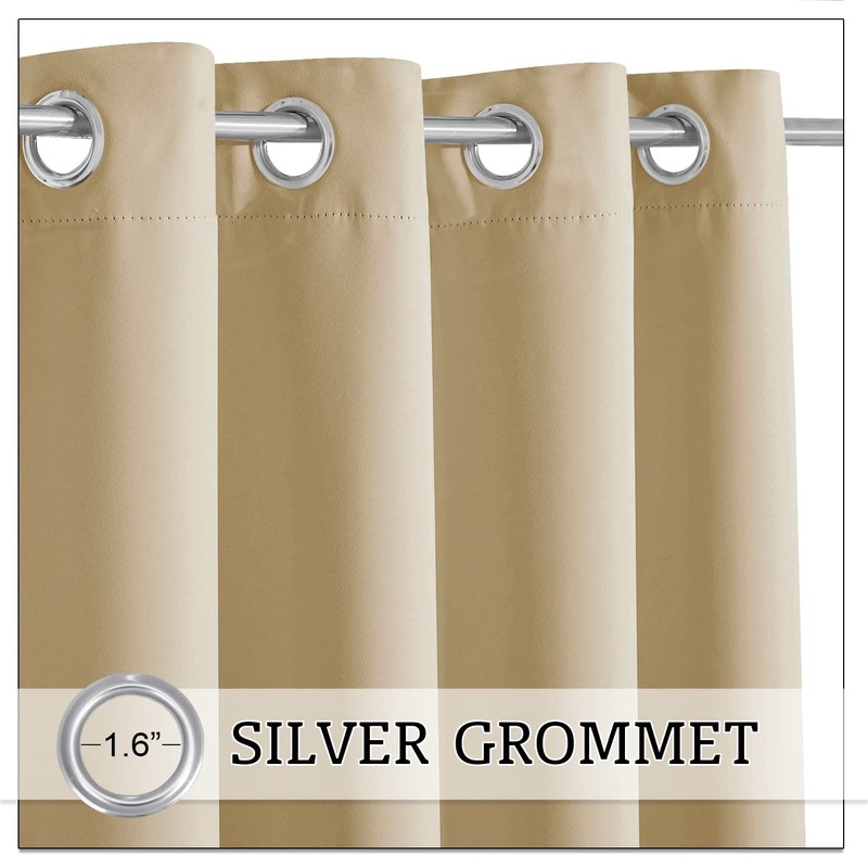 RYB HOME Blackout Curtains Windproof - Weighted Bags Attached, 84 inches Long, Waterproof Thermal Indoor Outdoor for Pool Shower Bedroom Patio, 2 Pcs, W 52 x L 84, Beige