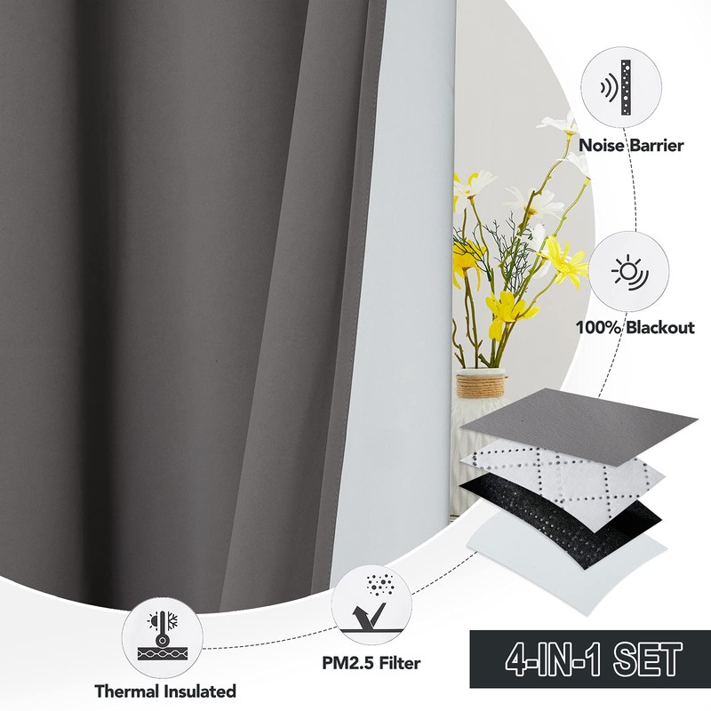 5 Filter Blackout Curtains RYB HOME 4-in-1 Curtain Set Small Particle Filter - Odor Reducing - Blackout - Thermal Insulated, All Functions Equipped on the 2 Panels Package