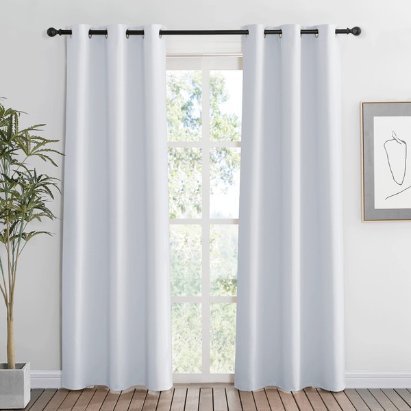 RYB HOME Room Darkening Curtains for Living Room, Energy Smart Privcay Window Curtains Drapes Durable Rustproof Grommet Panels for Home Office Laundry Room, W42 x L84 inch, Greyish White, Set of 2