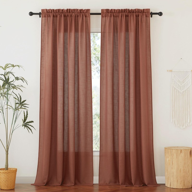 RYB HOME Terracotta Curtains Linen Blend Fall Drapes Semi Sheer Light Filteri...
