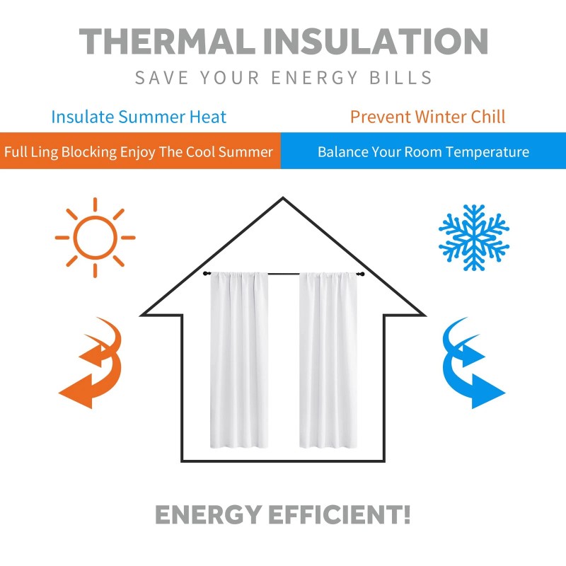 - ENERGY SMART - Curtains are work well on balance the temperature inside and outside by insulating summer heat and winter chill, so that these room darkening curtains can reduce the energy waste and save the daily bill effectively.