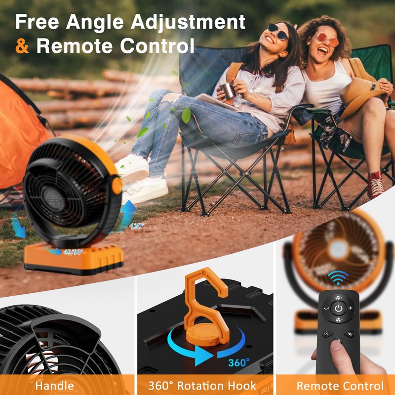 Rychi 40000mAh Battery Operated Fan with LED Lantern Timer USB-C Charging Rechargeable Fan Battery Powered Table Fan for Camping