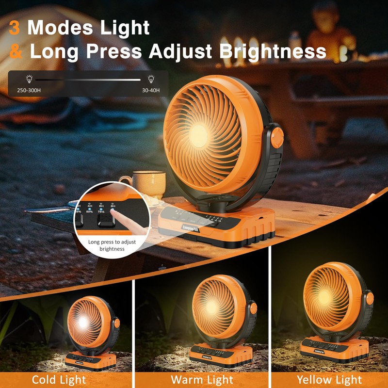 • Battery Operated Fan with LED Lantern Timer USB-C Charging Rechargeable Fan Battery Powered Table Fan for Camping