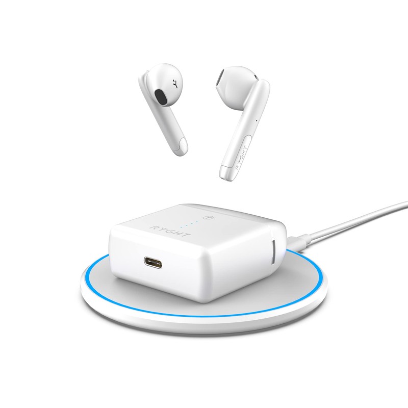 RYGHT Nemesis + TrueWireless Headphones with Touchscreen and Automatic Connection Housing with Induction Charger (Induction Charger Included) - White