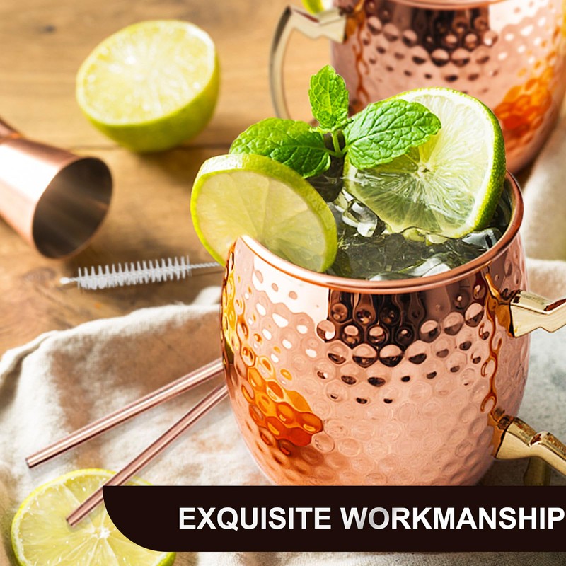 RYLIFEOGI Moscow Mule Cups Set of 4, 19 oz Copper Cups with Jigger Straws, Gift for Bar, Party, Home Party