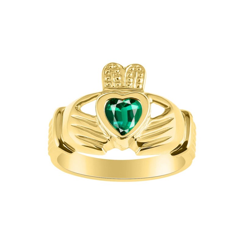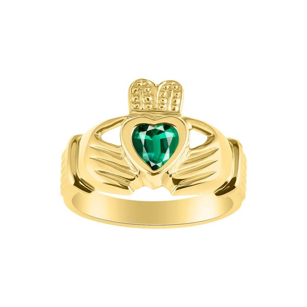 *RYLOS Claddagh, Chaddah, Cladder Love, Loyalty Freindship Green Emerald & Diamond Ring - May Birthstone*