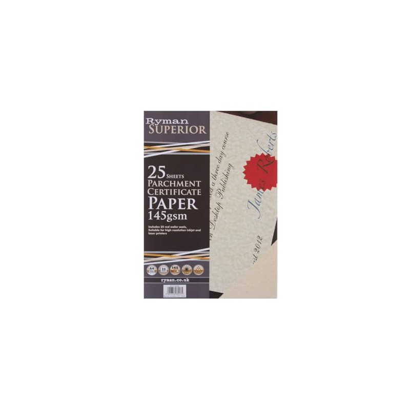- This A4 Ryman Certificate Paper pack contains 25 sheets of A4 paper, each weighing 145gsm