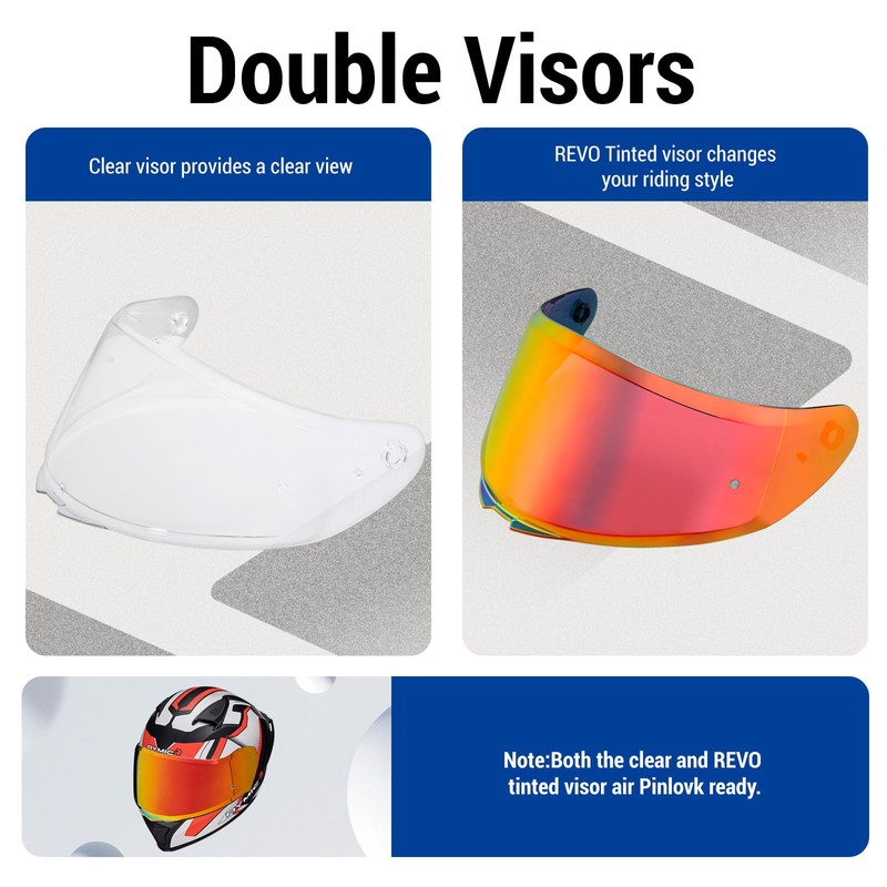 - 2-Piece Visor System: The SR6 helmet comes with 1 clear visor and 1 multicolour visor, featuring high-definition, impact-resistant lenses and a 190° Max Vision for better visibility in complex riding conditions. The visors are easy to remove and install.