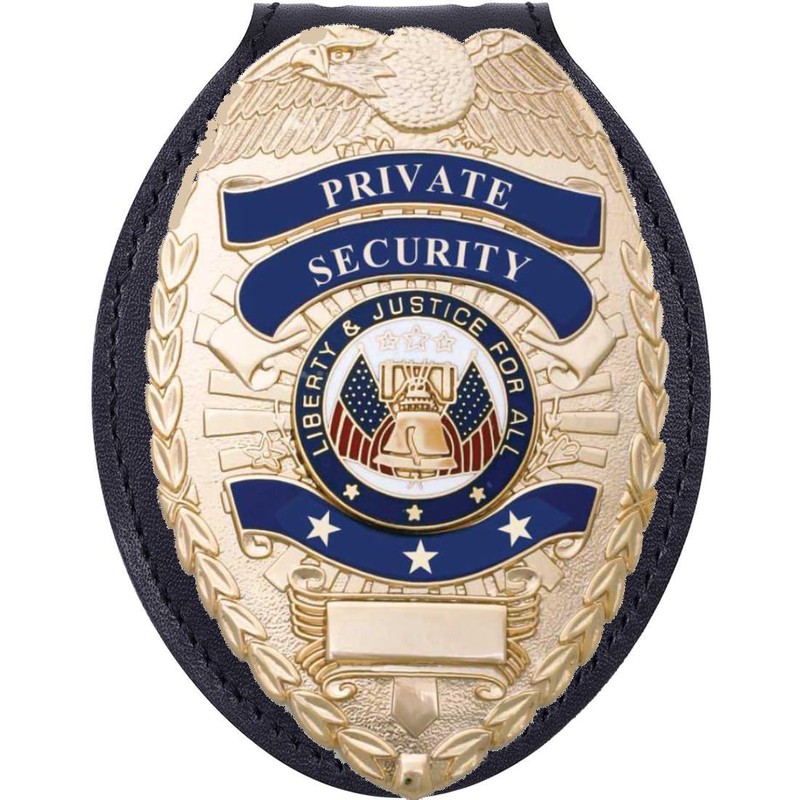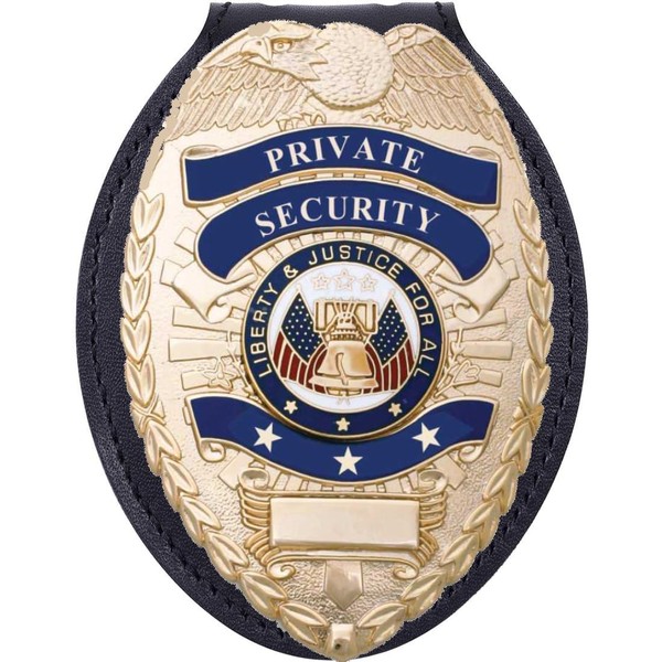Ryno Gear's Private Security Universal Oval Costume Badge + Holder: Standard Leather Shield Case with, Hook Fastener, 2-5/8" x 3-5 (Oval Badge, Brass Badge - Leather Holder)