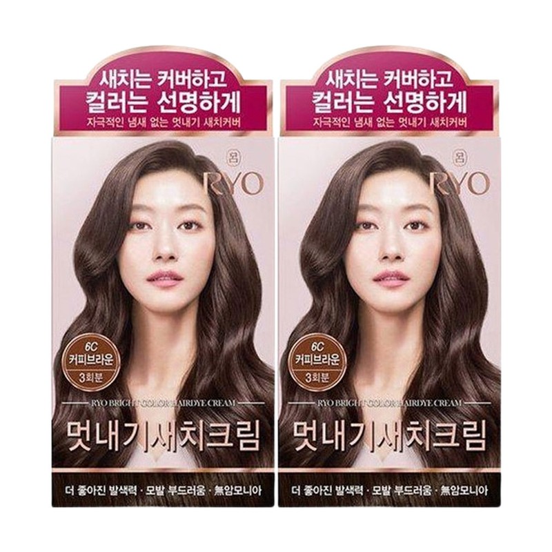 Ryo AP Ryeo Woochae Stylish Gray Hair Cream 6C Coffee Brown x 2 / Cream Self Root Dye Gray Hair Dye