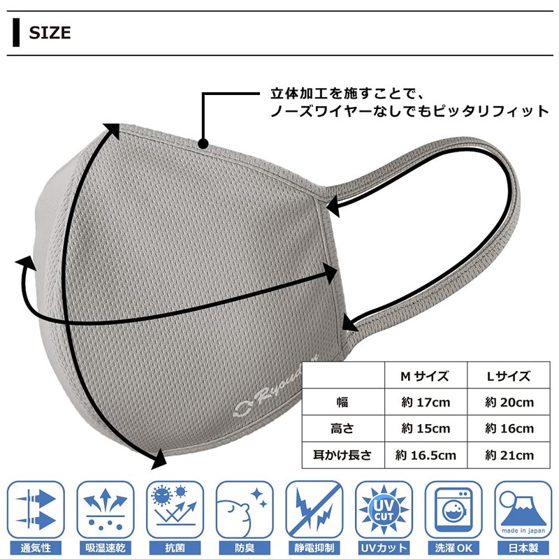 Ryoudan RDM01LGY-M-2P Unisex Sports Mask, Light Gray, M (2 Pieces) | UV Protection, Washable, pH Control, Moisture Wicking, Moisture Wicking, Cooling, Deodorizing, Antibacterial, Odor Resistant,