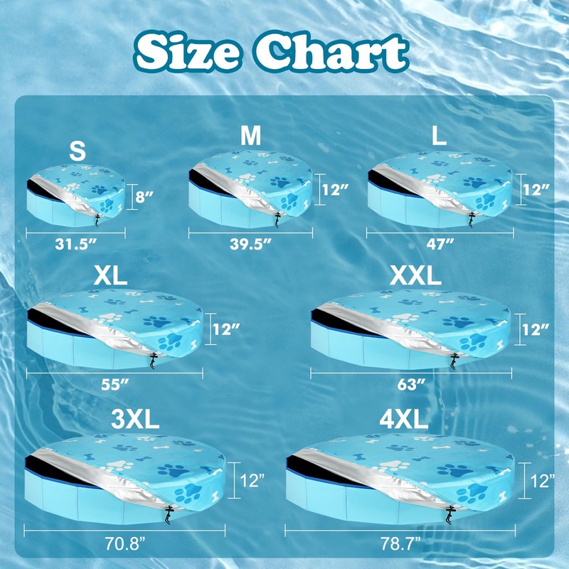 - ✔️Perfect Accessories for Round Pools : 4XL--Fit for 78.7"*12" pet portable round pool. Our swimming pool cover has five sizes for you to choose to fit most portable pools on the market. Please measure the size of your swimming pool before ordering and choose the right pool cover.