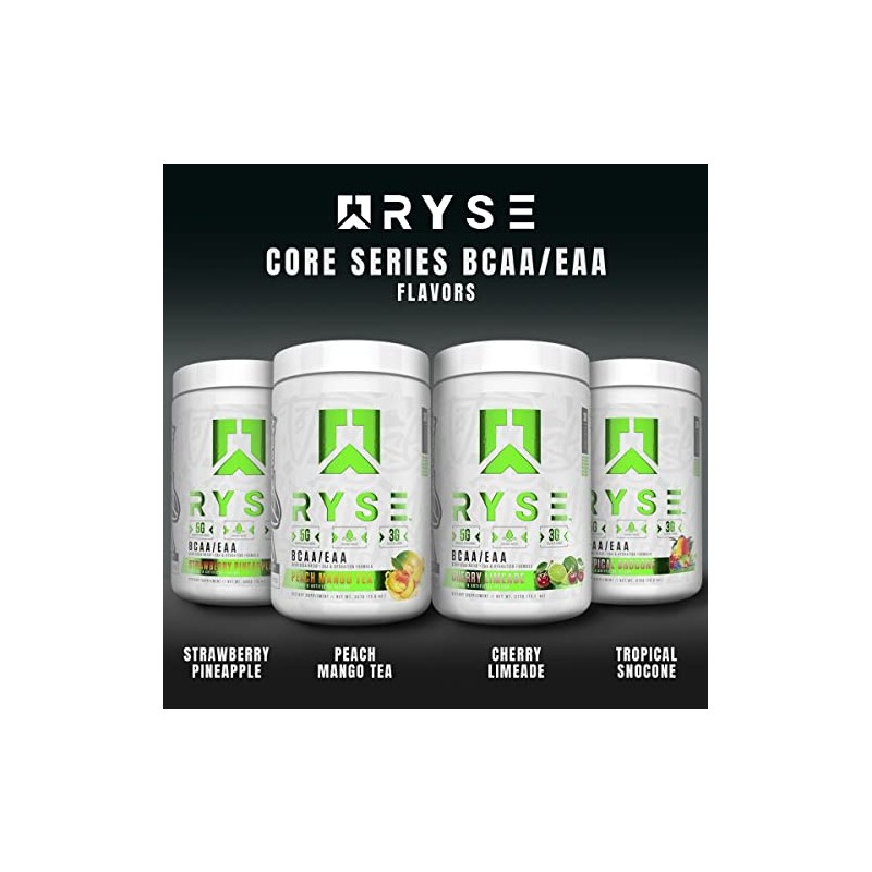 Ryse Core Series BCAA+EAA | Recover, Hydrate, and Build | with 5g Branched Chain Aminos and 3g Essential Aminos | 30 Servings (Tropical Snocone)
