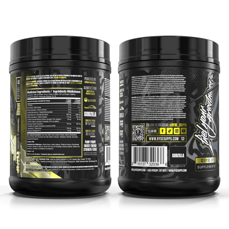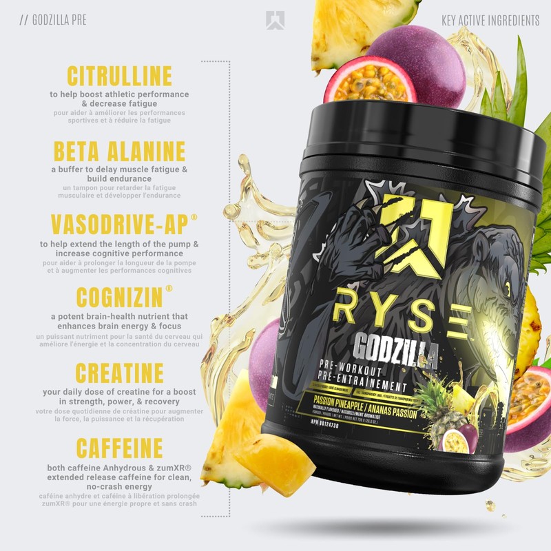 RYSE Noel Deyzel x Godzilla Pre Workout | Intense Pumps, Energy, & Focus | Citrulline & Beta Alanine | 400mg Total Caffeine | 40 Servings (Passion Pineapple)