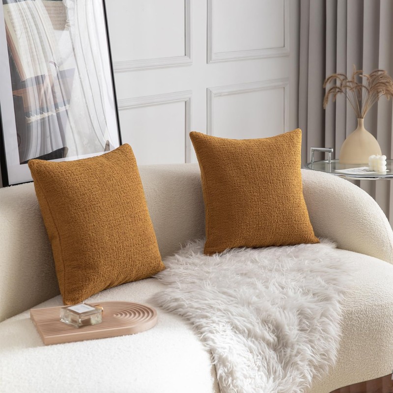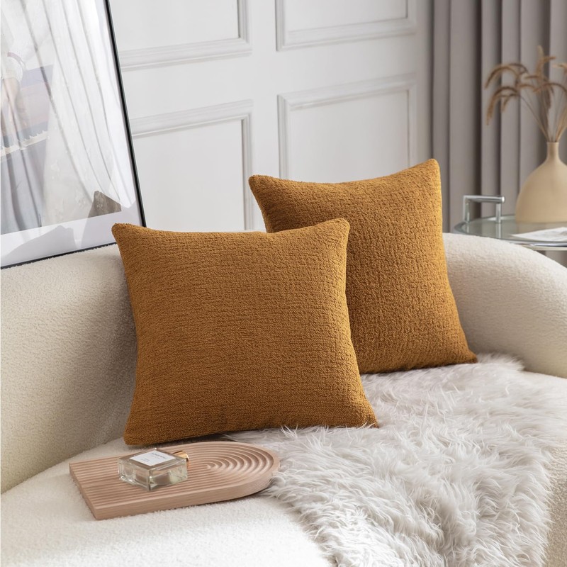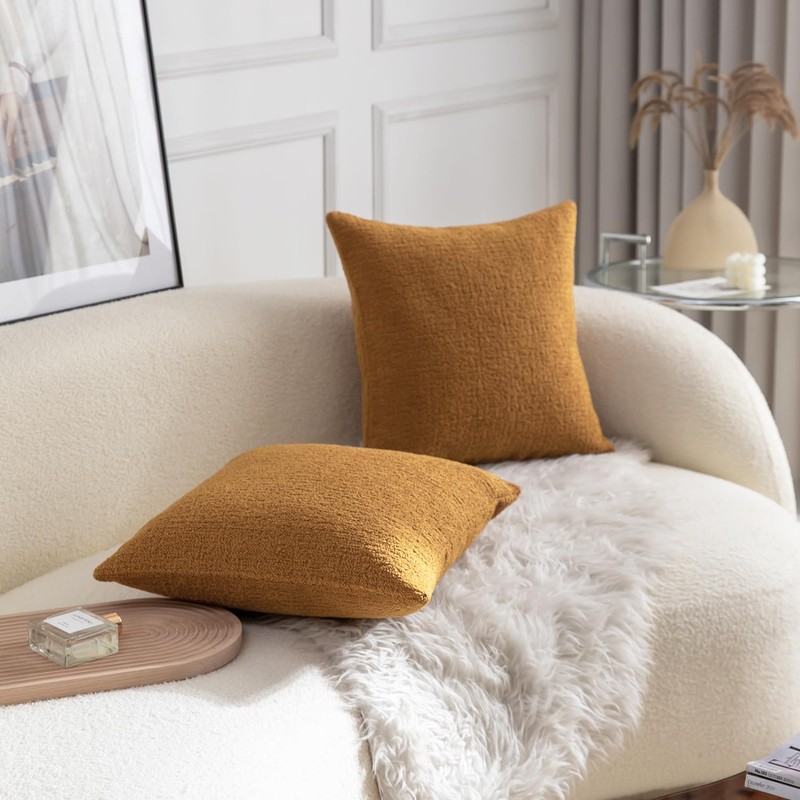 Rythome Ochre Comfy Teddy-Like Textured Throw Pillow Covers for Bed and Couch - 18"x18", Pack of 2