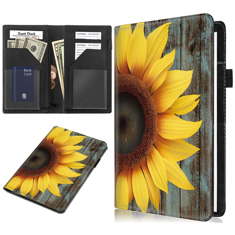 RYUITHDJP Server Books, Enlarged 9x5 Inches Server Book for Waitress, Waitress Books with Zipper Pocket Sunflower Design Serving Book Organizer Restaurant Guest Check Presenter