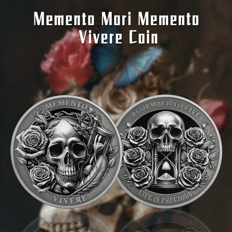 - Memonto Mori & Memonto Vivere Coin : The Memento Mori coin encourages us to seize the day, reminding us of life's brevity and urging us to live fully and presently, without excessive concern for the future. The Memento Vivere coin is a prompt to savor each instant, urging us to embrace joy and significance in daily life. It motivates us to do more than merely exist; it inspires us to actively relish and engage with life's journey