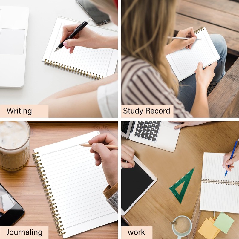 - Spiral Binding: The metal spiral allows pages to turn smoothly and stay flat, so you can easily write across both sides or fold the notebook back when space is tight.