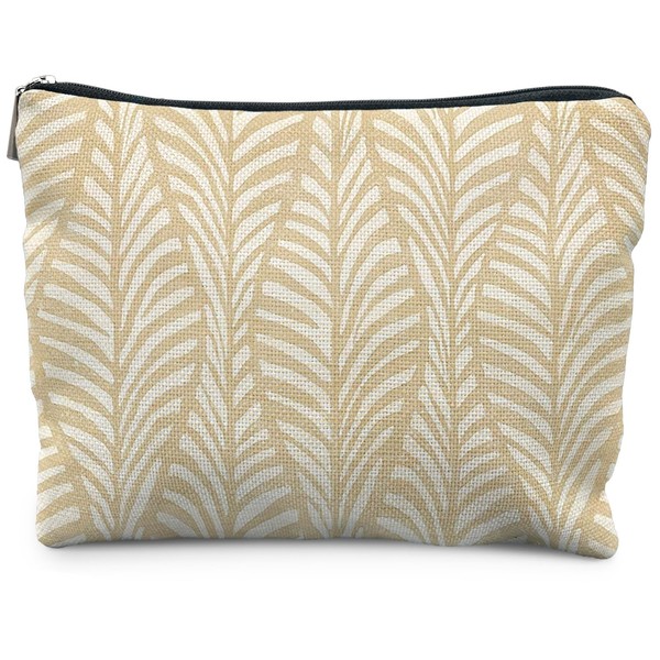 RYYCDOI Boho Beige Leaf Makeup Bag, Neutral Block Print Leaves Cosmetic Bags for Women, Minimalist Beige Botanical Zipper Makeup Pouch