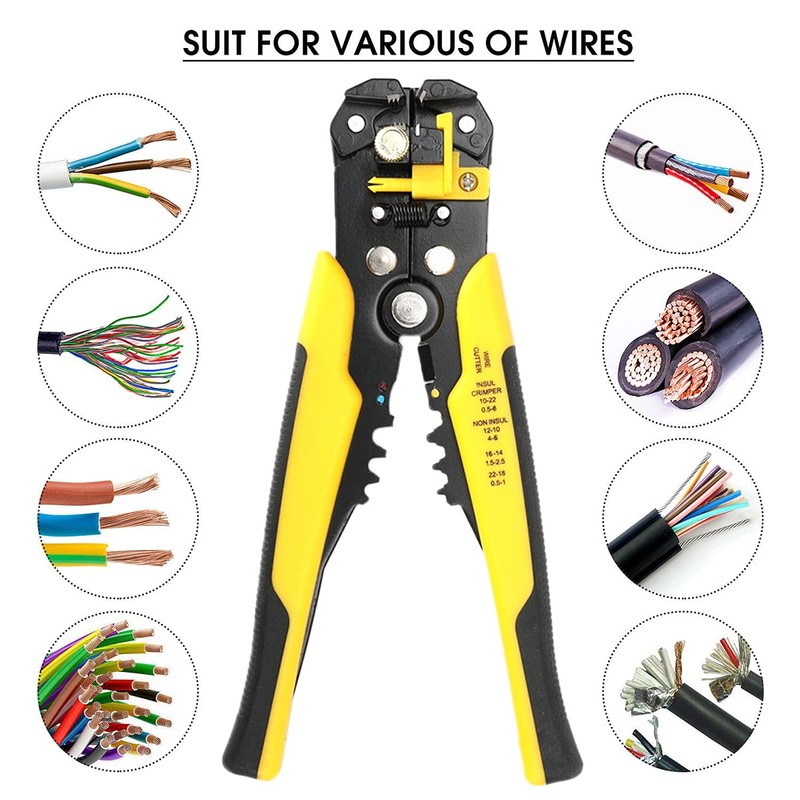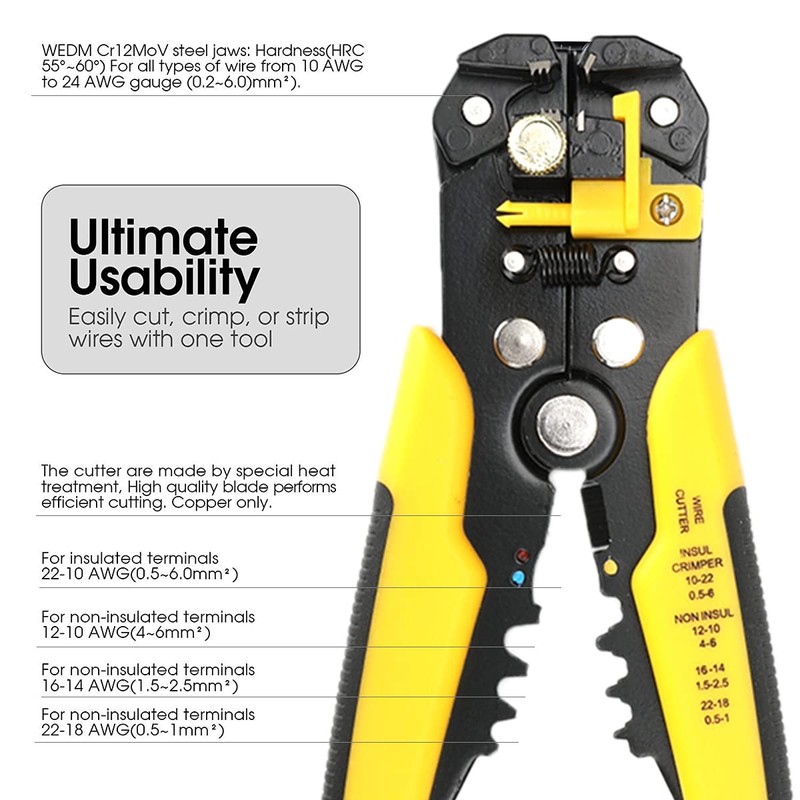 RZJZGZ Automatic Wire Stripper 10-24 AWG, 0.2-6.0mm² 3-in-1 Self-Adjusting Wire Cutter, Automatic Cable Stripper, Cable Stripper and Terminal Crimper (Yellow)