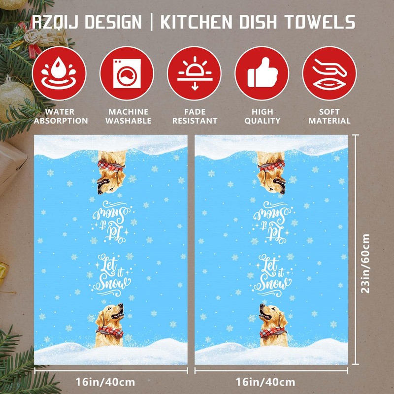 RZQIJ Winter Wonderland Golden Retriever Snowflake Towels Dish Towels Dishcloth, Blue Winter Christmas Holiday Decor for Kitchen Bathroom Home, 16 x 24 Farmhouse Decoration Hand Towels Set of 2. 064