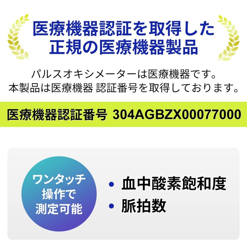 - 【医療機器認証パルスオキシメーター】本製品は医療機器認証番号を取得した、正規の医療機器製品です。