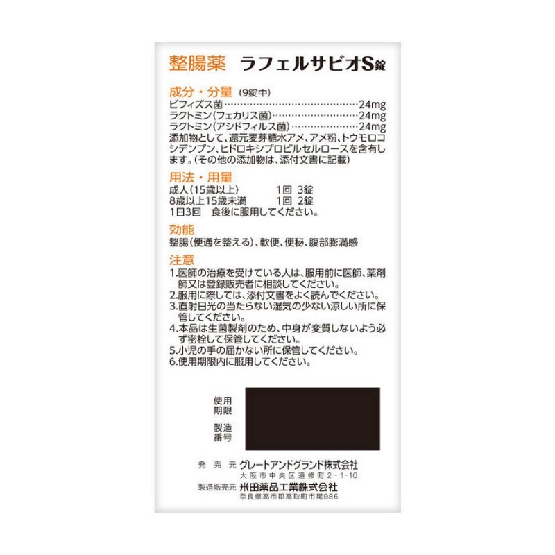 整腸薬 ラフェルサ ビオS錠 560錠 3個セット 乳酸菌 米田薬品工業