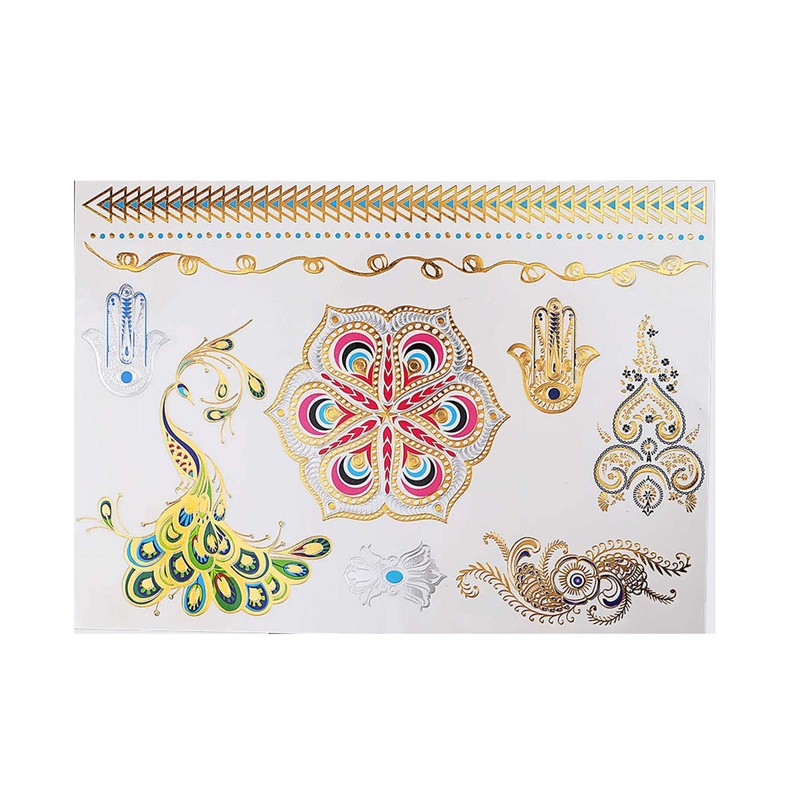 S.A.V.I 3D Temporary Tattoo Golden And Silver Metallic Sticker Colourful Butterflies Swans Peacock Design Size 21x15CM - 1PC. (58), Gold, 22 g