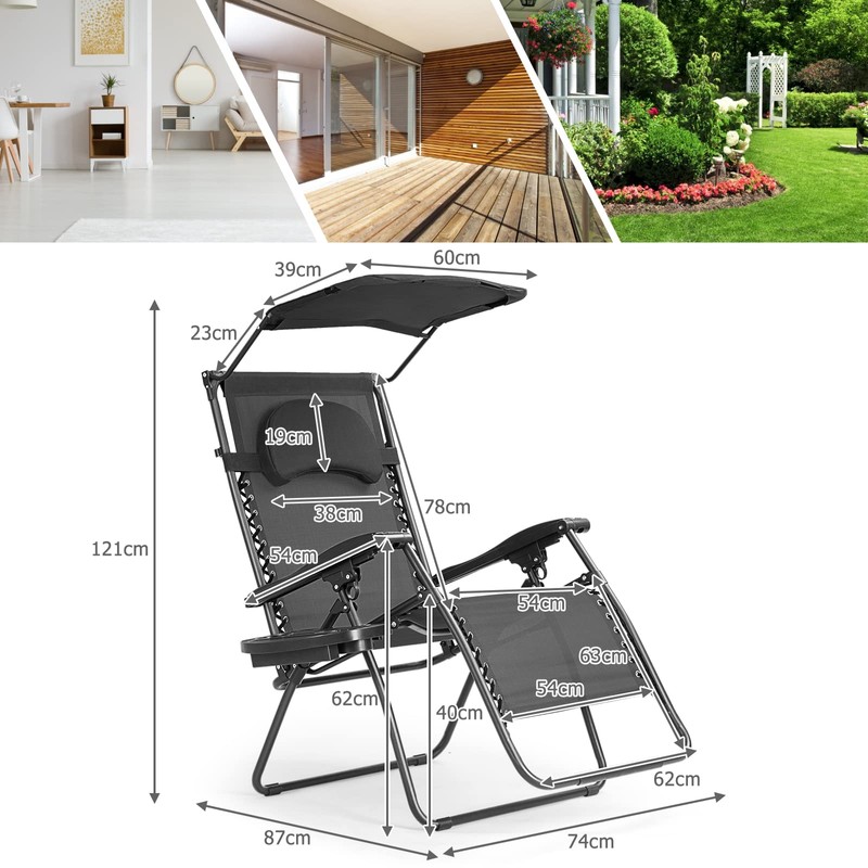 S AFSTAR Zero Gravity Chair with Shade Canopy, Reclining Lounge Chair with Adjustable Canopy Removable Headrest, Cup Holder, Folding Zero Gravity Lawn Chair for Patio Poolside, Assembly-Free, Black