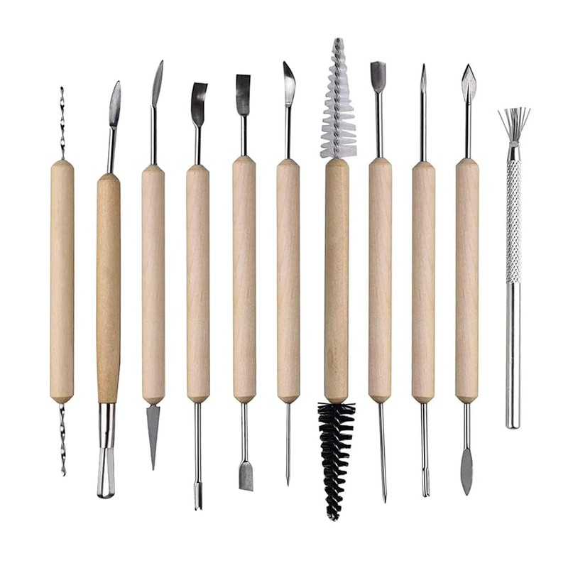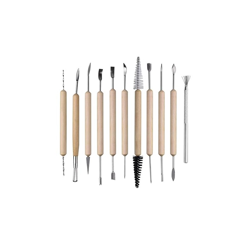 - Clay sculpting tools are made of high-quality metal head, wooden handle, and plastic. Perfect for pottery craft, nail, rock, blending, drawing, smoothing, and cleaning.