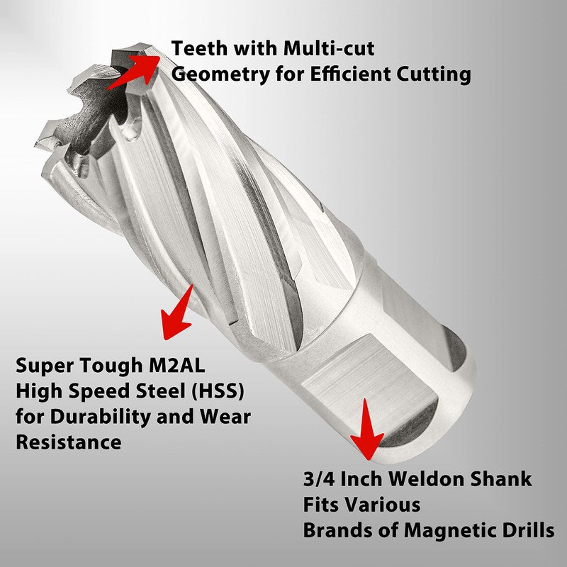 - Annular cutters made with super tough M2AL high speed steel (HSS) for durability, wear resistance, high efficiency and superior service life