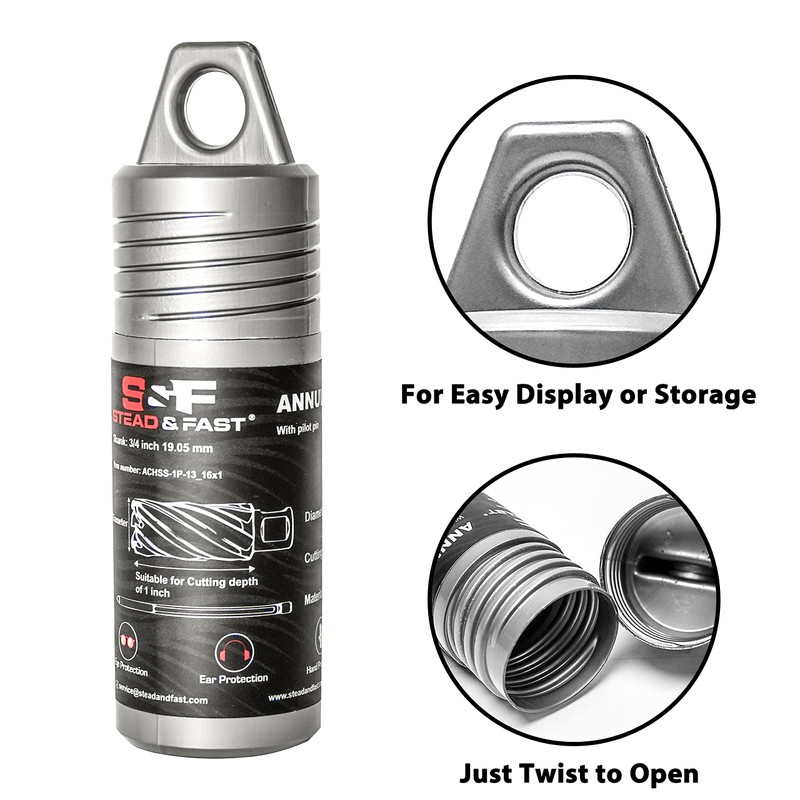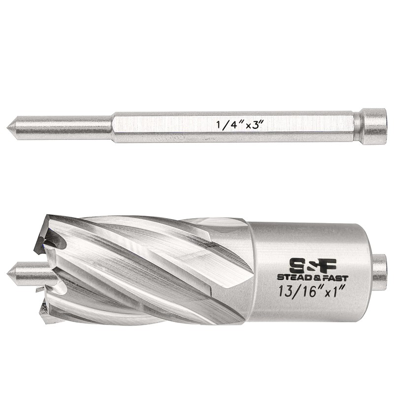 S&F STEAD & FAST Annular Cutter, 13/16" Cutting Diameter x 1" Depth of Cut for Magnetic Drill Press, Mag Drill Bits with Pilot Pin