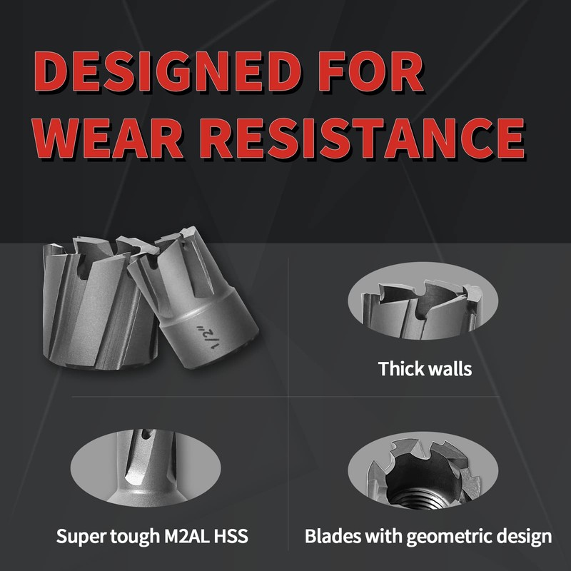 - PREMIUM HSS STEEL Drill bit cutters with thick walls made of super hard M2AL High Speed Steel (HRC 66), designed for wear resistance and superior performance