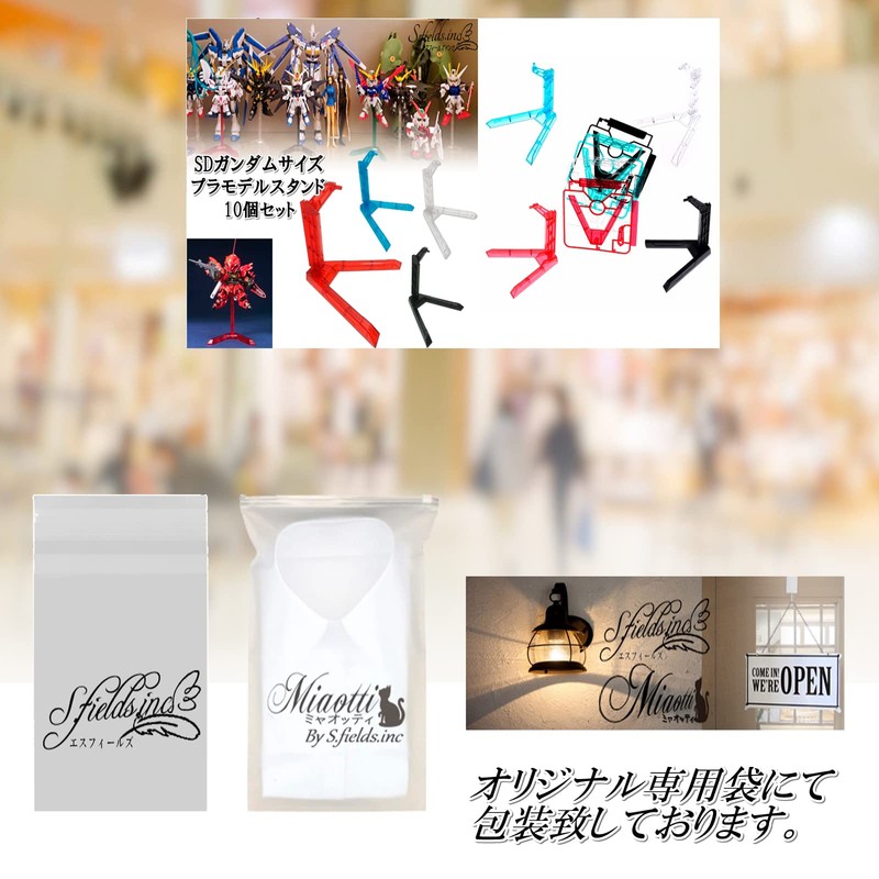 S.fields.inc Plastic Model Stand, 10 Pieces, SD Gundam Size, Display Stand, Pedestal (Clear)