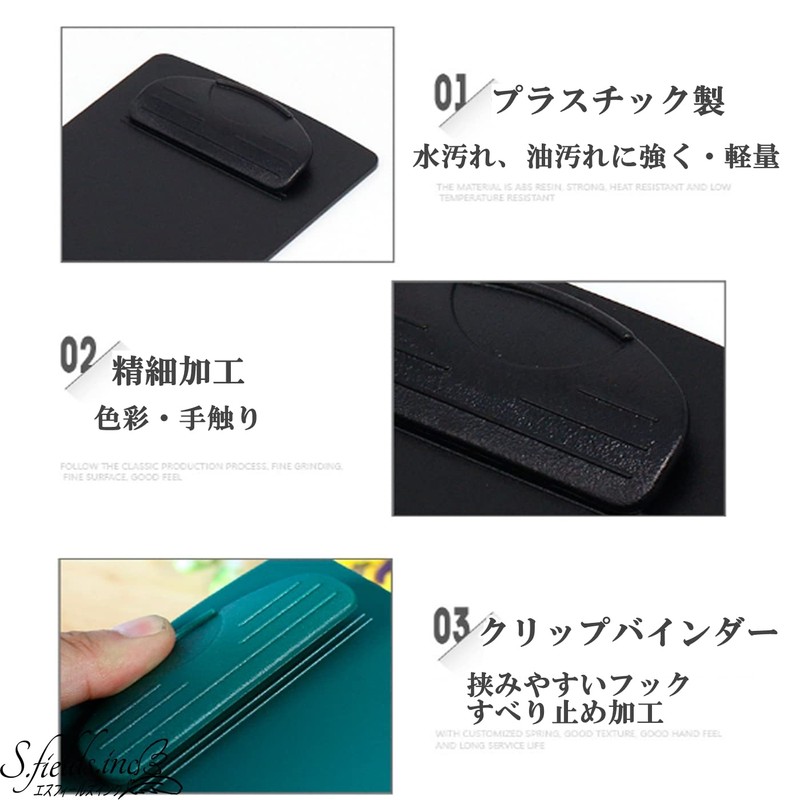 - The clipboard has a hook hole at the top and a groove in the binder for easy finger attachment