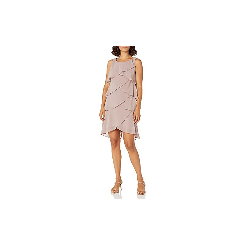 S.L. Fashions Women's Sleeveless Chiffon Tiered Cocktail Dress Missy, Cashmere, 6 Petite