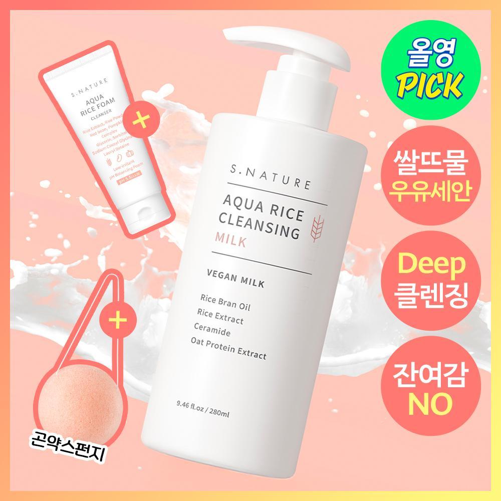 S.NATURE Aqua Rice Cleansing Milk 280ml Set (+Konjac Sponge) - S.NATURE Aqua Rice Cleansing Milk 280ml Set (+Konjac Sponge)