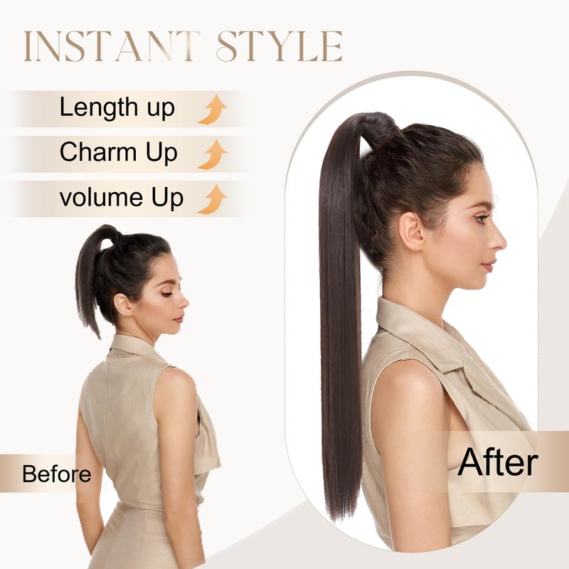 - Upgrade your hairstyle with our Straight Wrap Around Ponytail Hair Extension, made from 100% Japan high-quality synthetic fiber.