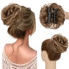S-noilite Claw Clip Messy Bun Hair Piece 100% Real Human Hair Buns Curly Wavy Tousled Bun Scrunchies for Women Medium Brown Highlights Clip in Bun Hair Extension