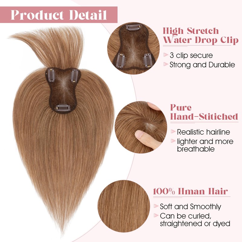 - 100% Human Hair Topper for Women: Our hair toppers are made of 102% high quality human hair,ensuring a natural and realistic look.They are handmade with care,providing a healthy and soft texture that is tangle-free.You can easily trim, curl, dye,or restyle the hair topper according to your desired hairstyle