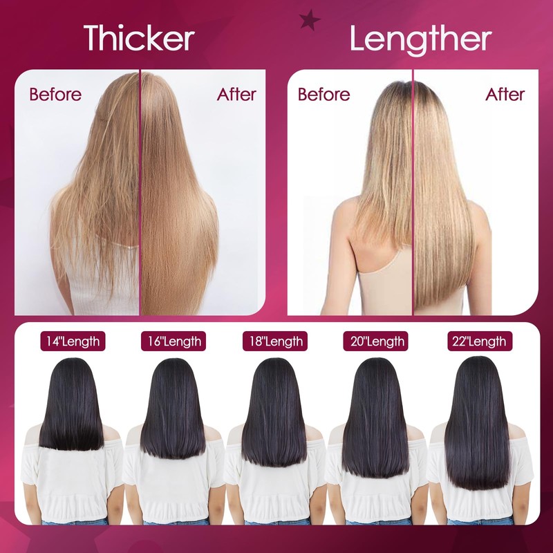 - Easy care with styling flexibility: with these 100% real hair extensions, you can maintain your hair care as usual. No matter straightening/curling/styling (below 180℃), you don't have to worry about damage. Proper care can extend the life of the extensions.
