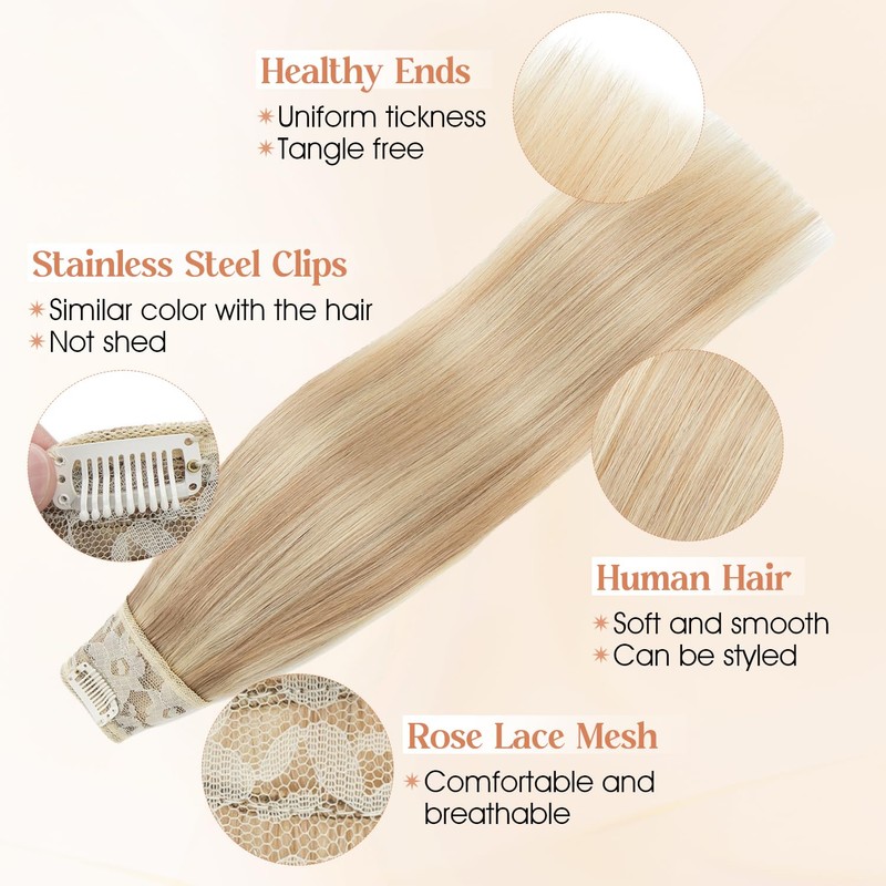 S-noilite Real Human Hair Blonde Highlights One Piece Clip in Hair Extensions 3/4 Full Head Clip on Remy Hair Extensions for Women Straight V Shaped Weft Invisible Clip in Hair Extensions(20",18P613)