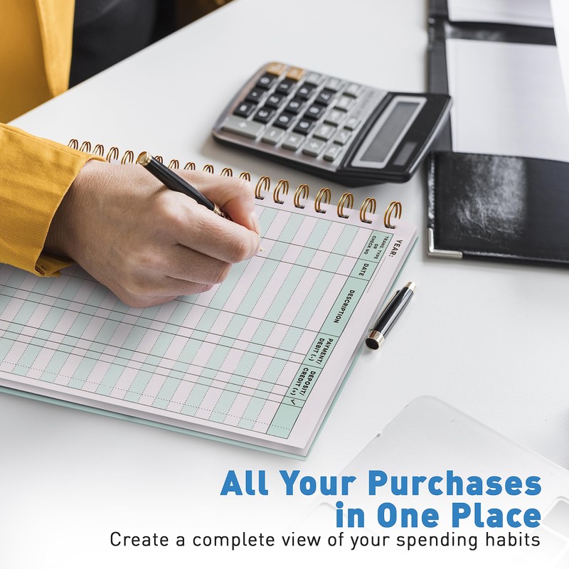 - Large & in Charge –– No more squinting or fumbling with reading glasses. This notebook-size expense and finance tracker has bold, easy-to-read text. Including over 200 pages of thick 100gsm paper, you can record your personal spending, or use the book as a check register for your small business