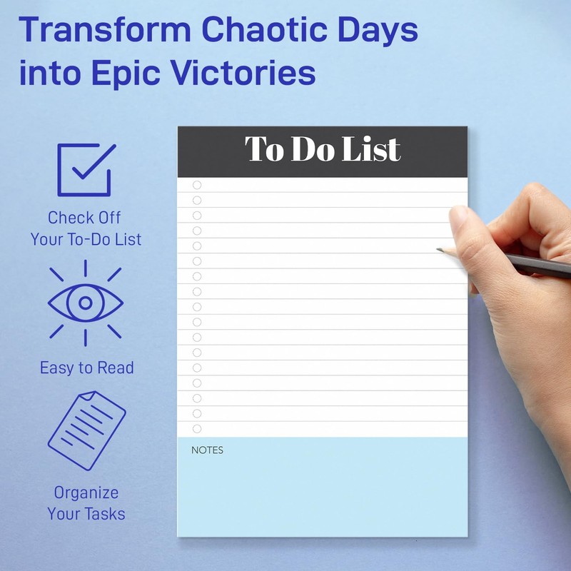 - REDUCE OVERWHELM — When your mind is swirling with thoughts, your check list notepad brings order. These to do pads organize your day in a clear, structured format, clearing the fog of chaos. Free up mental space and letting your brain relax while your to-do list notepad holds down the fort, giving you the power to say, "I've got this," as you conquer each task