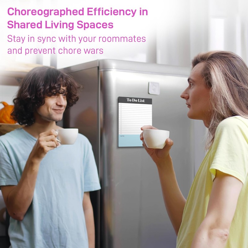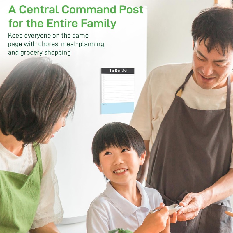 - YOUR VISUAL COMMAND CENTER — This to do list notepad magnetic backing sticks to your refrigerator and keeps your tasks in sight. Roommates, family members and spouses can keep their schedules in sync with a to do lists notepad to guide them. Stay on the same page with work organization, household chores, grocery lists and group activities, so nothing slips between the cracks