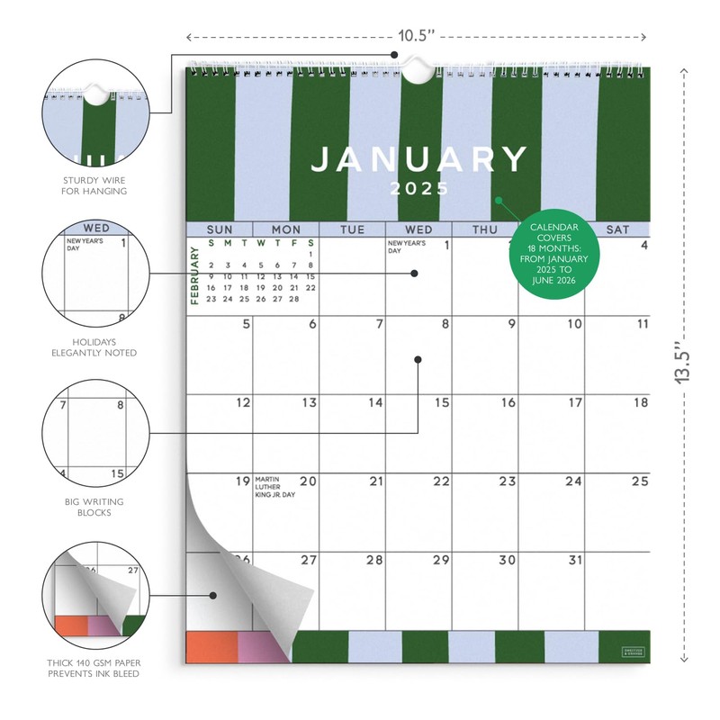 - Stay on Track with Style — Choose from fun florals to classic blue to add personality to your calendar wall. Each month’s page features an exceptional design to keep things fresh. The burst of color from your January 2025 to June 2026 monthly wall calendar will inspire you to stay organized