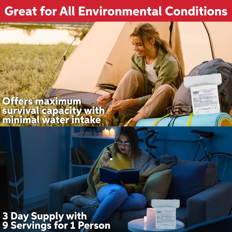 S.O.S. Rations Emergency 3600 Calorie Food Bar - 3 Day / 72 Hour Package with 5 Year Shelf Life- 8 Packs